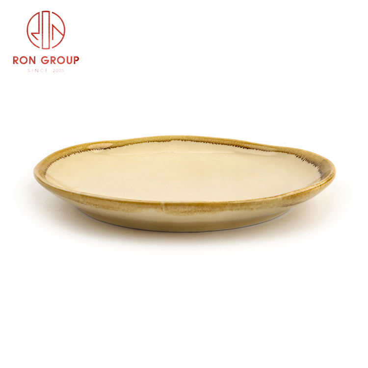 Hot Sale Cobble Stone Series simple morandi plate irregular shallow round plate ceramic soup plate
