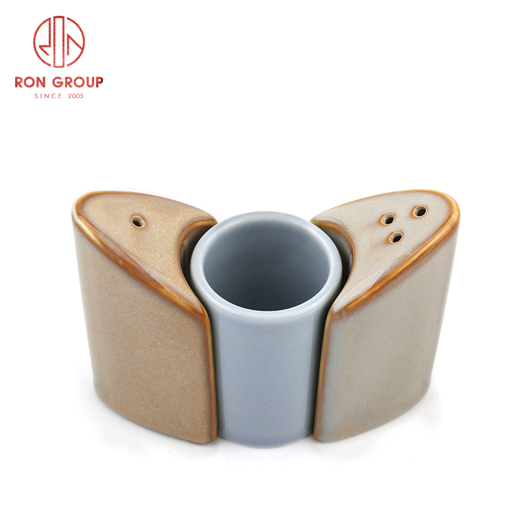 Good quality unique fambe ceramic plate Asian style tableware set pepper salt and chopsticks holder set