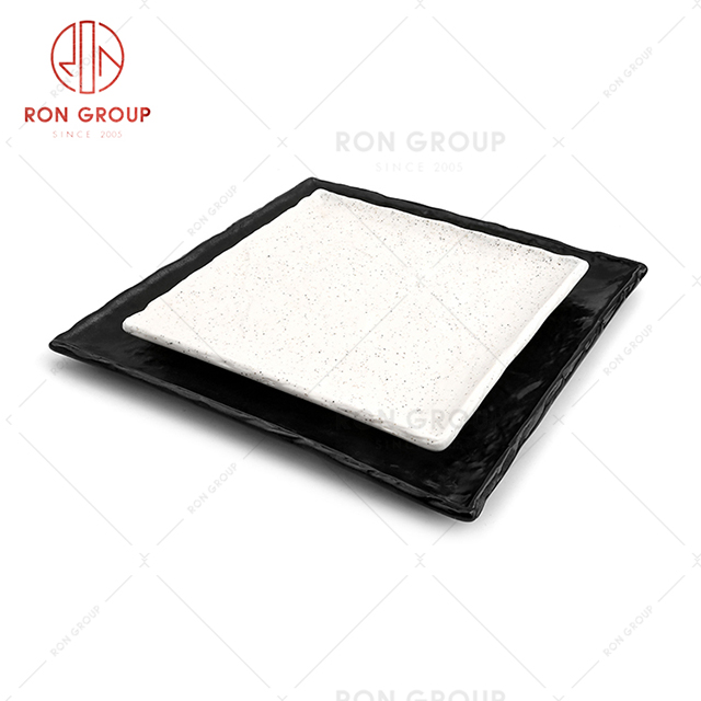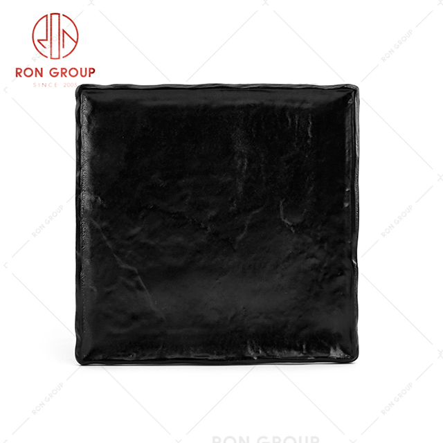 Common hotel tableware restaurant durable frosted white dinnerware square black plate