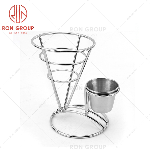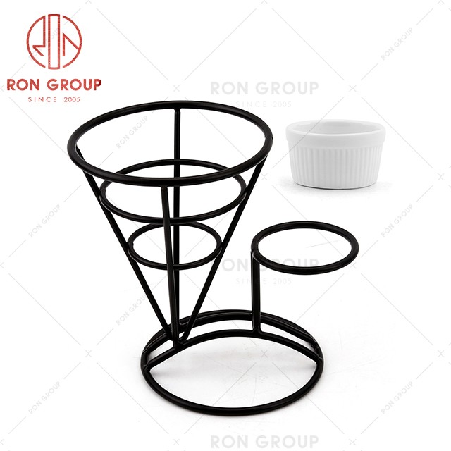 Exquisite popular fast food restaurant matte black stainl steel single cup conical frame with sauce bowl