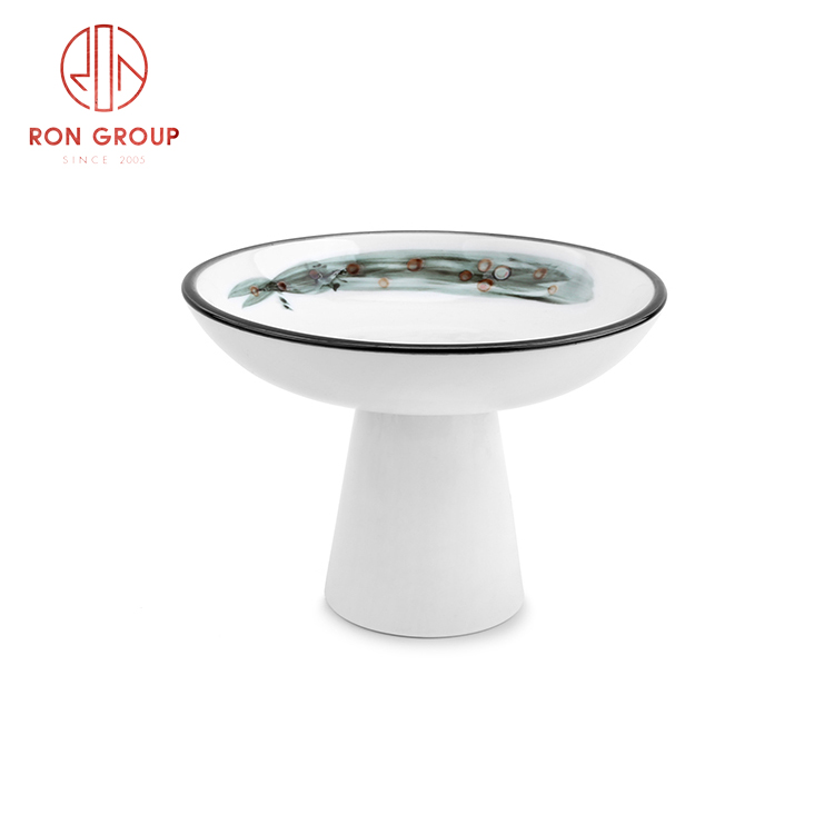 High-quality new chinese High stand bowl fine dining porcelain ink painting tableware
