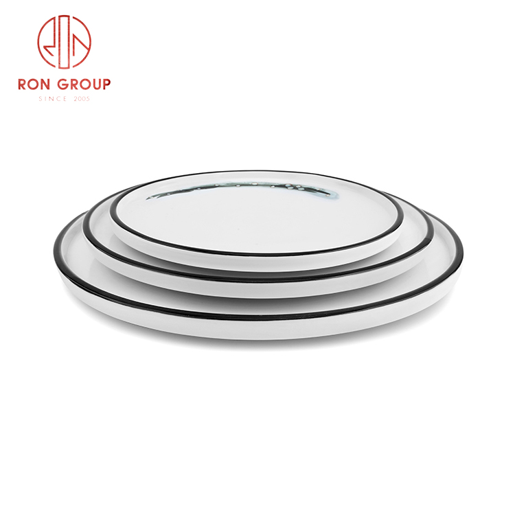 wholesale cheap price porcelain dipped finish round plate fine dining porcelain ink painting tableware