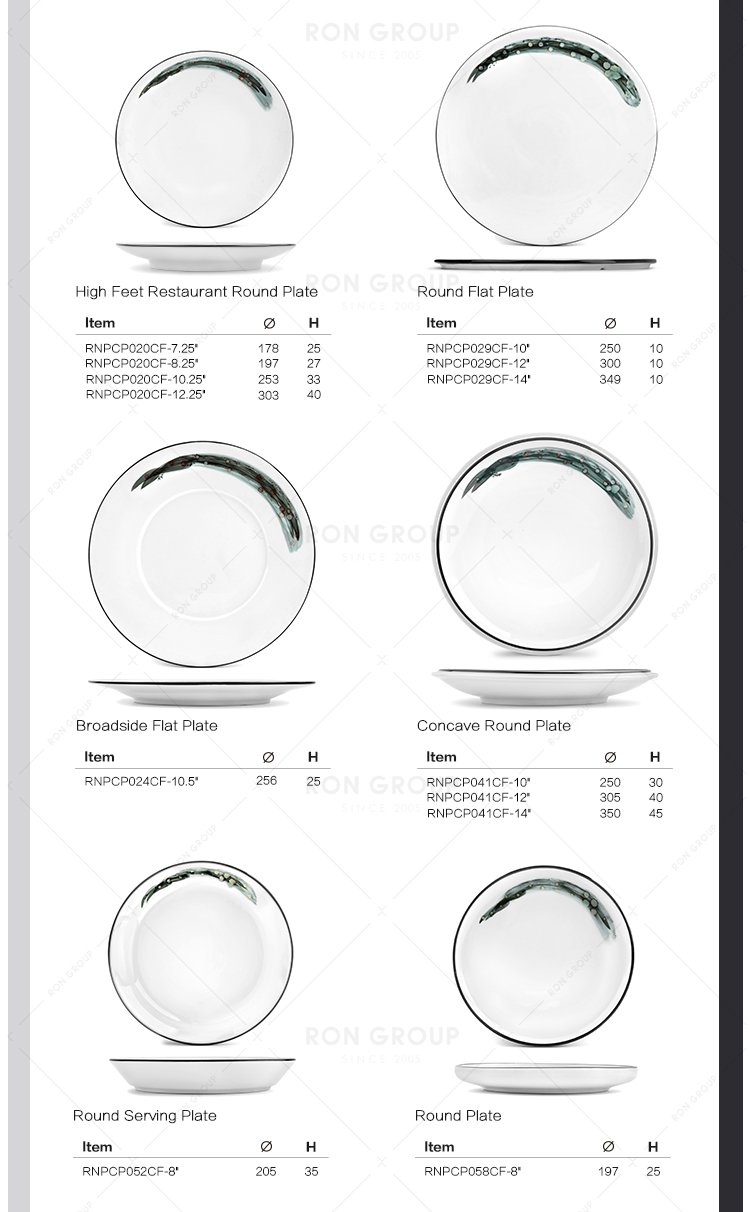 Chinese restaurant use porcelain high feet round plate fine dining porcelain ink painting tableware